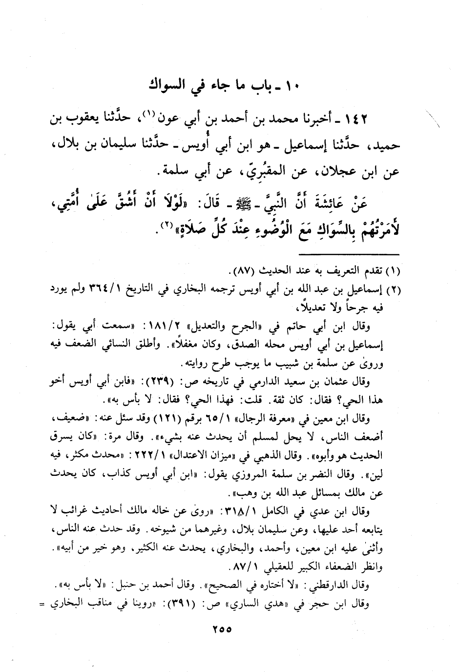 (¬2) إسماعيل بن عبد الله بن أبي أويس ترجمه البخاري في التاريخ 1/ 364 ولم يورد فيه جرحا ولا تعديلاً،