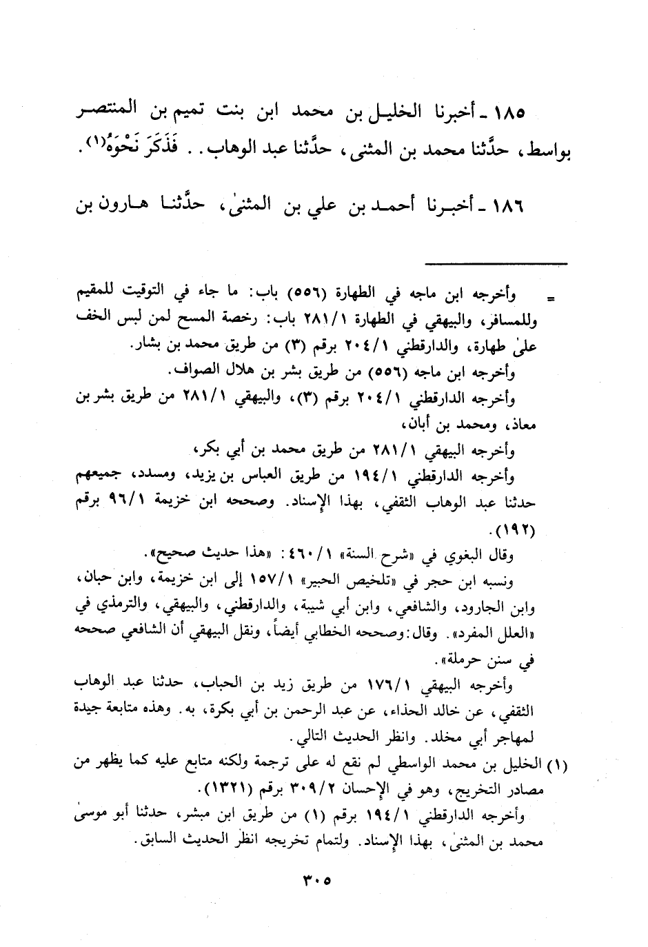 185 - أخبرنا الخليل بن محمد ابن بنت تميم بن المنتصر بواسط، حدَّثنا محمد بن المثنى، حدَّثنا عبد الوهاب .. فَذَكَرَ نَحْوَهُ (¬1).