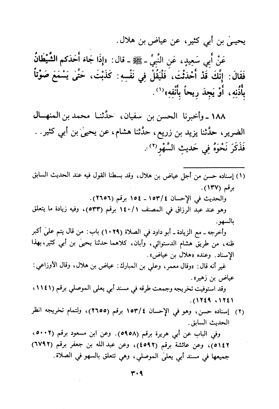 188 - وأخبرنا الحسن بن سفيان، حدَّثنا محمد بن المنهال الضرير، حدَّثنا يزيد بن زريع، حدَّثنا هشام، عن يحيى بن أبي كثير .. فَذَكَرَ نَحْوَهُ فِي حَديثِ السَّهْو (¬2).
