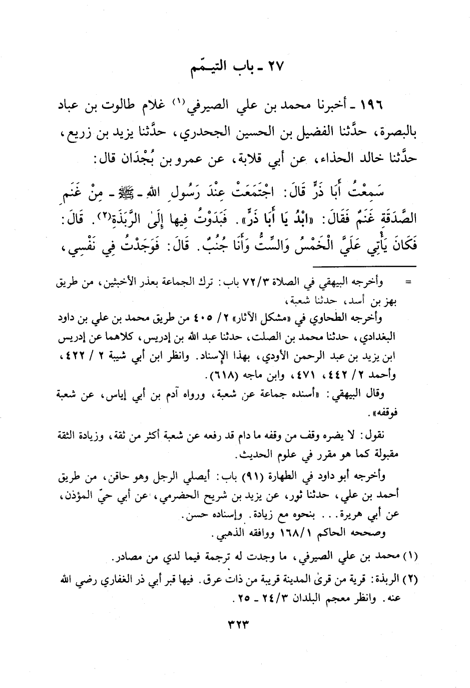 196 - أخبرنا محمد بن علي الصيرفي (¬1) غلام طالوت بن عباد بالبصرة، حدَّثنا الفضيل بن الحسين الجحدري، حدَّثنا يزيد بن زريع، حدَّثنا خالد الحذاء". عن أبي قلابة، عن عمرو بن بُجْدَان قال: