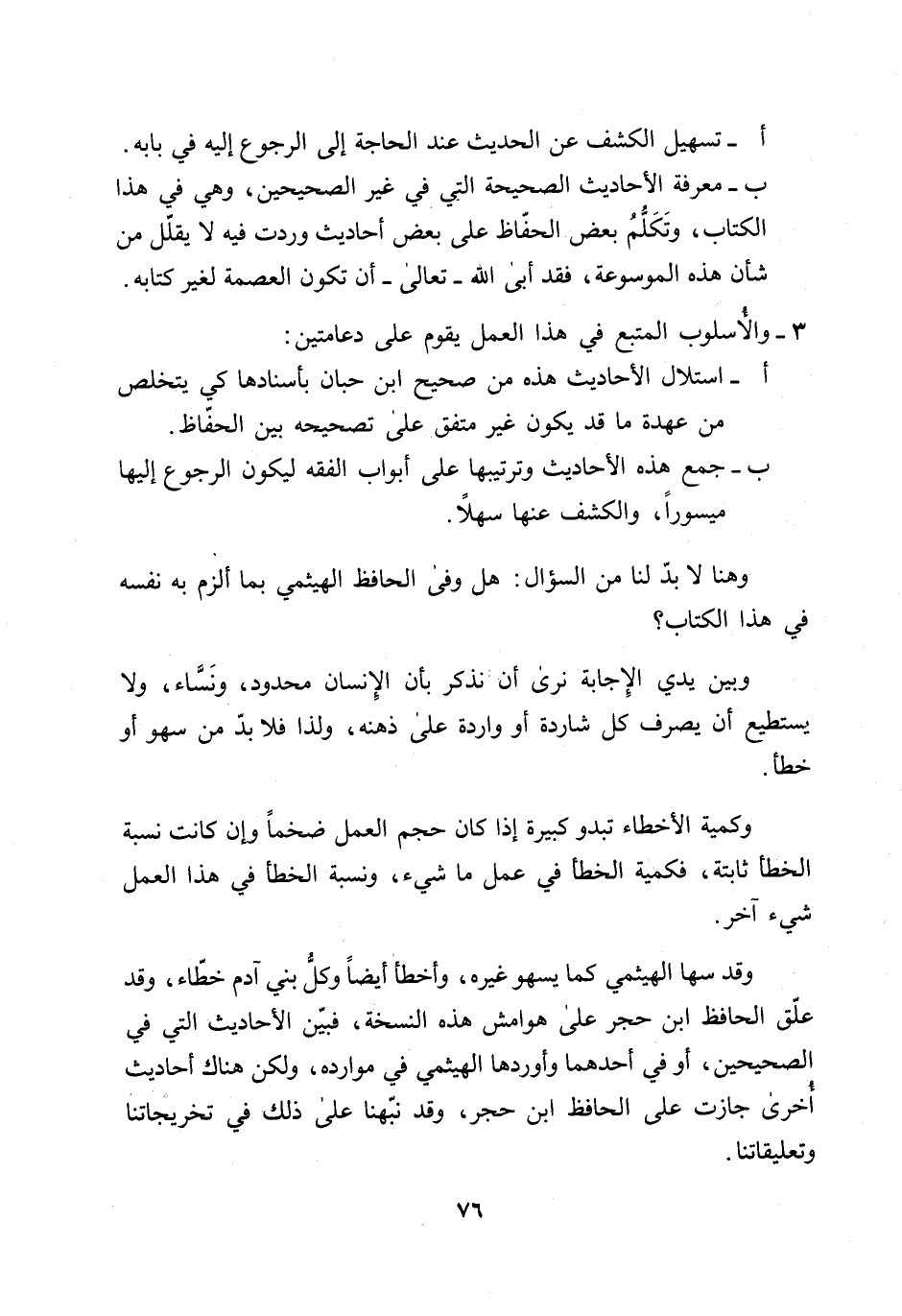 وقد سها الهيثمي كما يسهو غيره، وأخطأ أيضاً وكلُّ بني آدم خطّاء، وقد علّق الحافظ ابن حجر على هوامش هذه النسخة، فبيّن الأحاديث التي في الصحيحين، أو في أحدهما وأوردها الهيثمي في موارده، ولكن هناك أحاديث أُخرى جازت على الحافظ ابن حجر، وقد نبّهنا على ذلك في تخريجاتنا وتعليقاتنا.