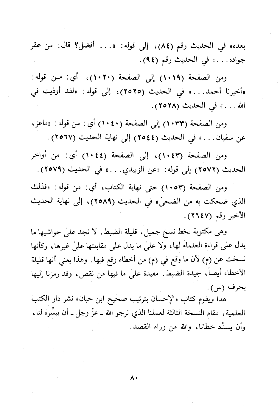 هذا ويقوم كتاب "الإِحسان بترتيب صحيح ابن حبان" نشر دار الكتب العلمية، مقام النسخة الثالثة لعملنا الذي نرجو الله -عزّ وجل- أن ييسِّره لنا، وأن يسدِّد خطانا، والله من وواء القصد.
