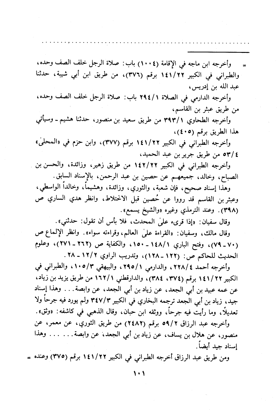 = وأخرجه ابن ماجه في الإِقامة (1004) باب: صلاة الرجل خلف الصف وحده، والطبراني في الكبير 22/ 141 برقم (376)، من طريق ابن أبي شيبة، حدثنا عبد الله بن إدريس،
