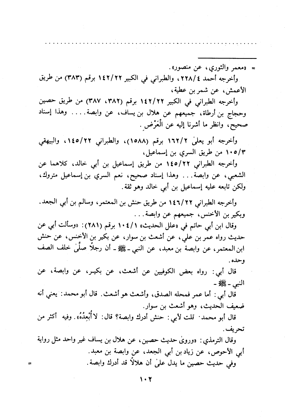 أبي الأحوص، عن زياد بن أبي الجعد، عن وابصة بن معبد. وفي حديث حصين ما يدل على أن هلالاً قد أدرك وابصة. =
