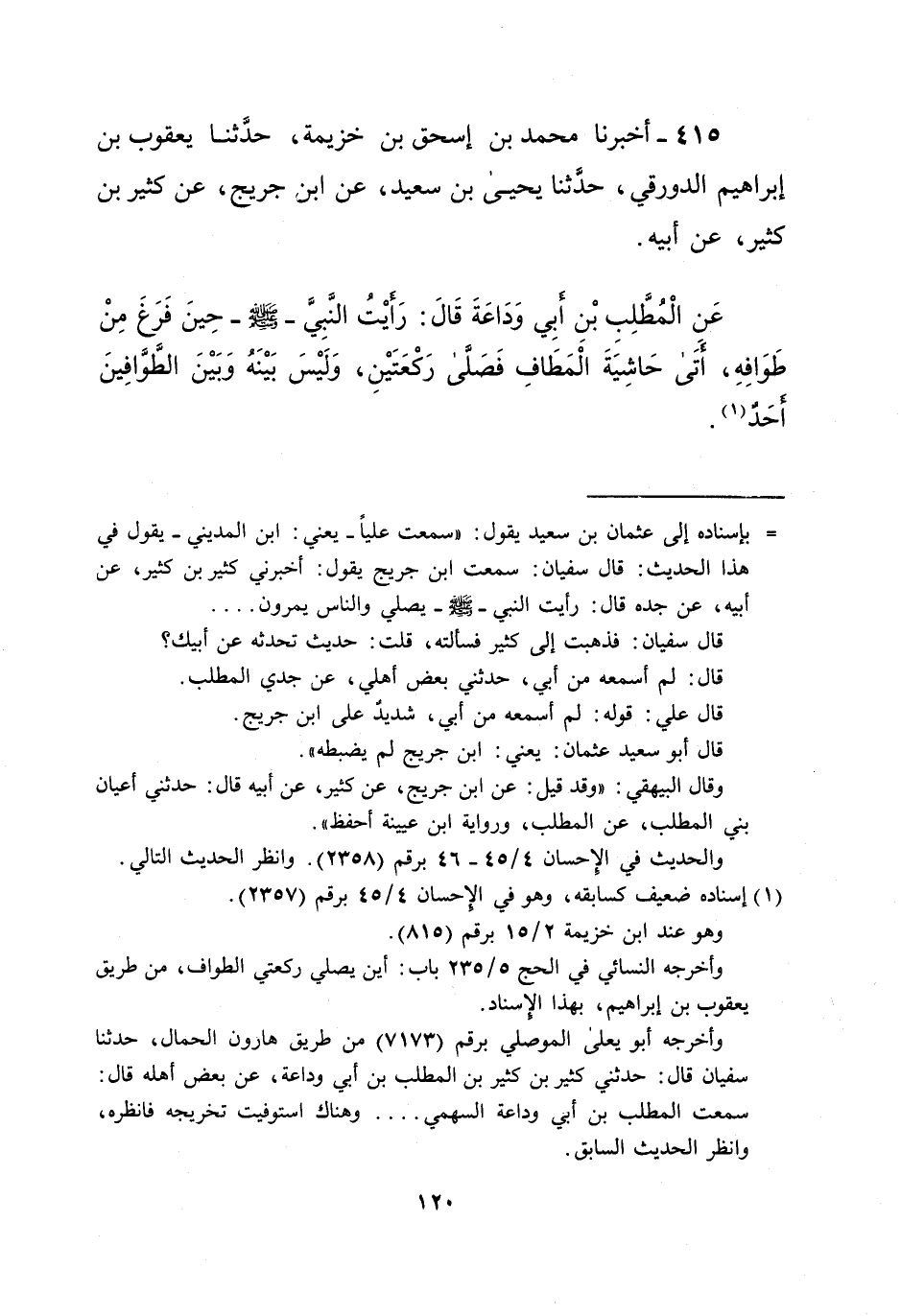 415 - أخبرنا محمد بن إسحاق بن خزيمة، حدَّثنا يعقوب بن إبراهيم الدورقي، حدثنا يحيى بن سعيد، عن ابن جريج، عن كثير بن كثير، عن أبيه.