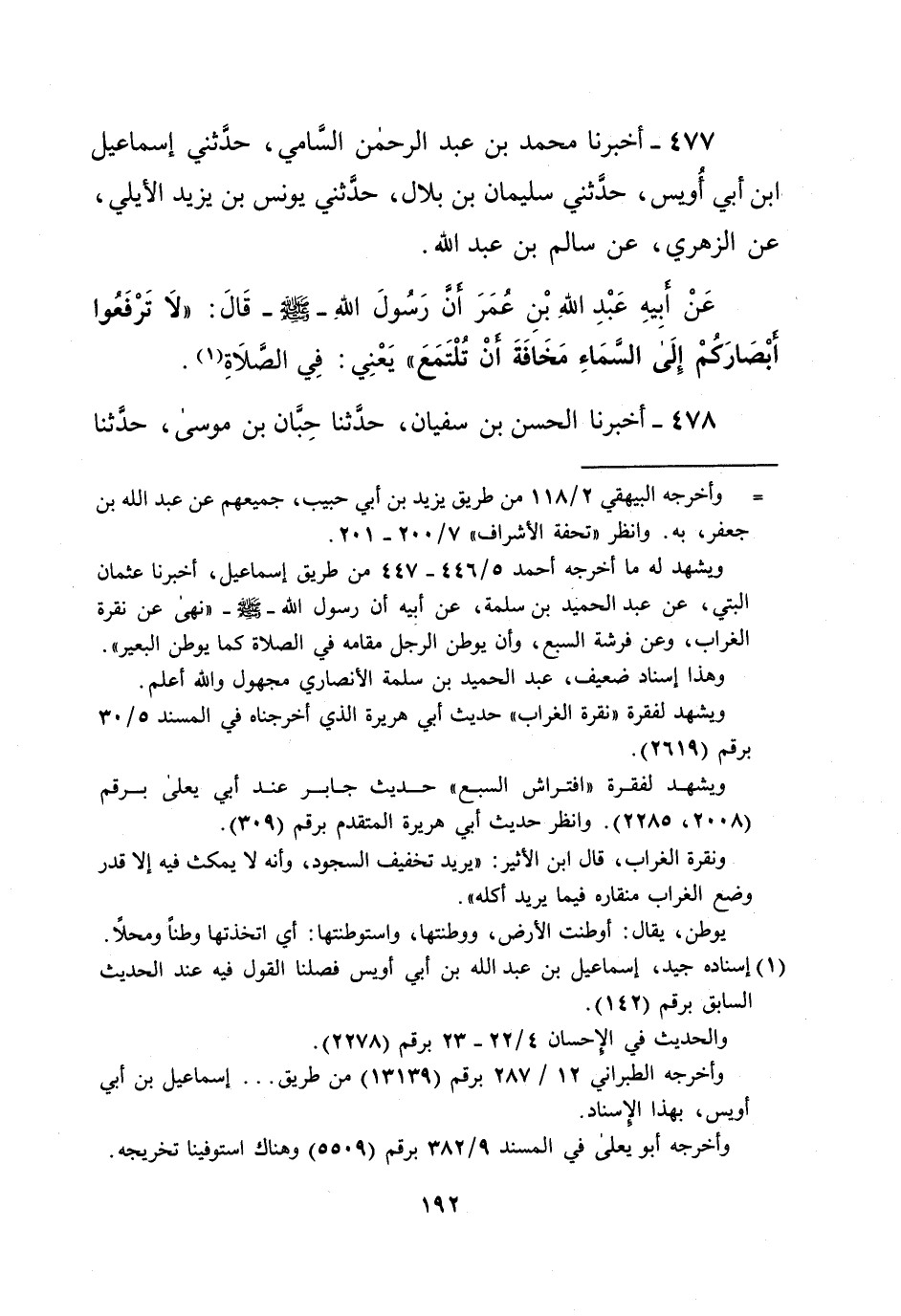 477 - أخبرنا محمد بن عبد الرحمن السَّامي، حدثنى إسماعيل ابن أبي أُويس، حدَّثني سليمان بن بلال، حدَّثني يونس بن يزيد الأيلي، عن الزهري، عن سالم بن عبد الله.