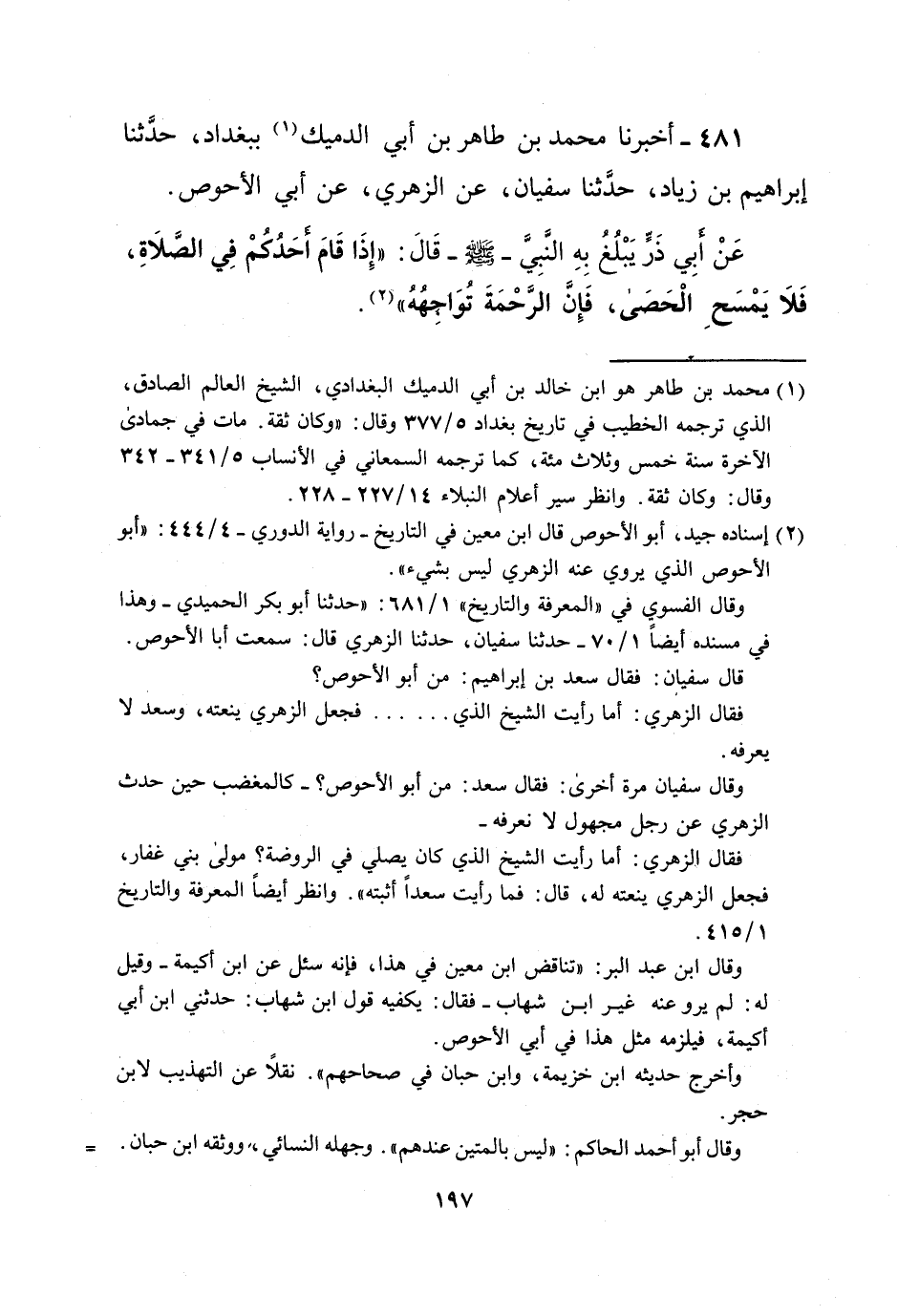 481 - أخبرنا محمد بن طاهر بن أبي الدميك (¬1) ببغداد، حدَّثنا إبراهيم بن زياد، حدَّثنا سفيان، عن الزهري، عن أبي الأحوص.