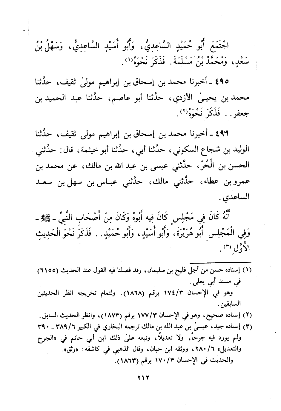 496 - أخبرنا محمد بن إسحاق بن إبراهيم مولى ثقيف، حدَّثنا الوليد بن شجاع السكوني، حدَّثنا أبي، حدَّثنا أبو خيثمة، قال: حدَّثني الحسن بن الْحُرّ، حدَّثني عيسى بن عبد الله بن مالك، عن محمد بن عمرو بن عطاء، حدَّثني مالك، حدَّثني عباس بن سهل بن سعد الساعدي.