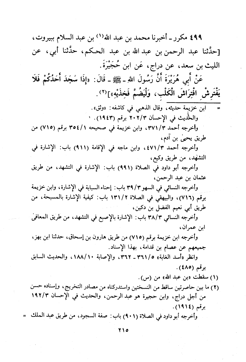 499 مكرر- أخبرنا محمد بن عبد الله (¬1) بن عبد السلام ببيروت، [حدَّثنا عبد الرحمن بن عبد الله، بن عبد الحكم، حدَّثنا أبي، عن الليث بن سعد، عن دراج، عَن ابن حُجَيْرَةَ.