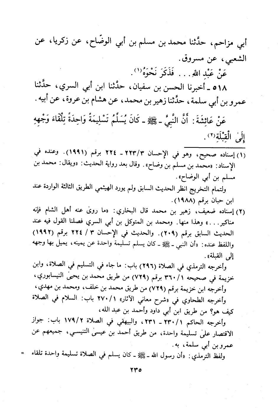 518 - أخبرنا الحسن بن سفيان، حدَّثنا ابن أبي السري، حدَّثنا عمرو بن أبي سلمة، حدَّثنا زهير بن محمد، عن هشام بن عروة، عن أبيه.