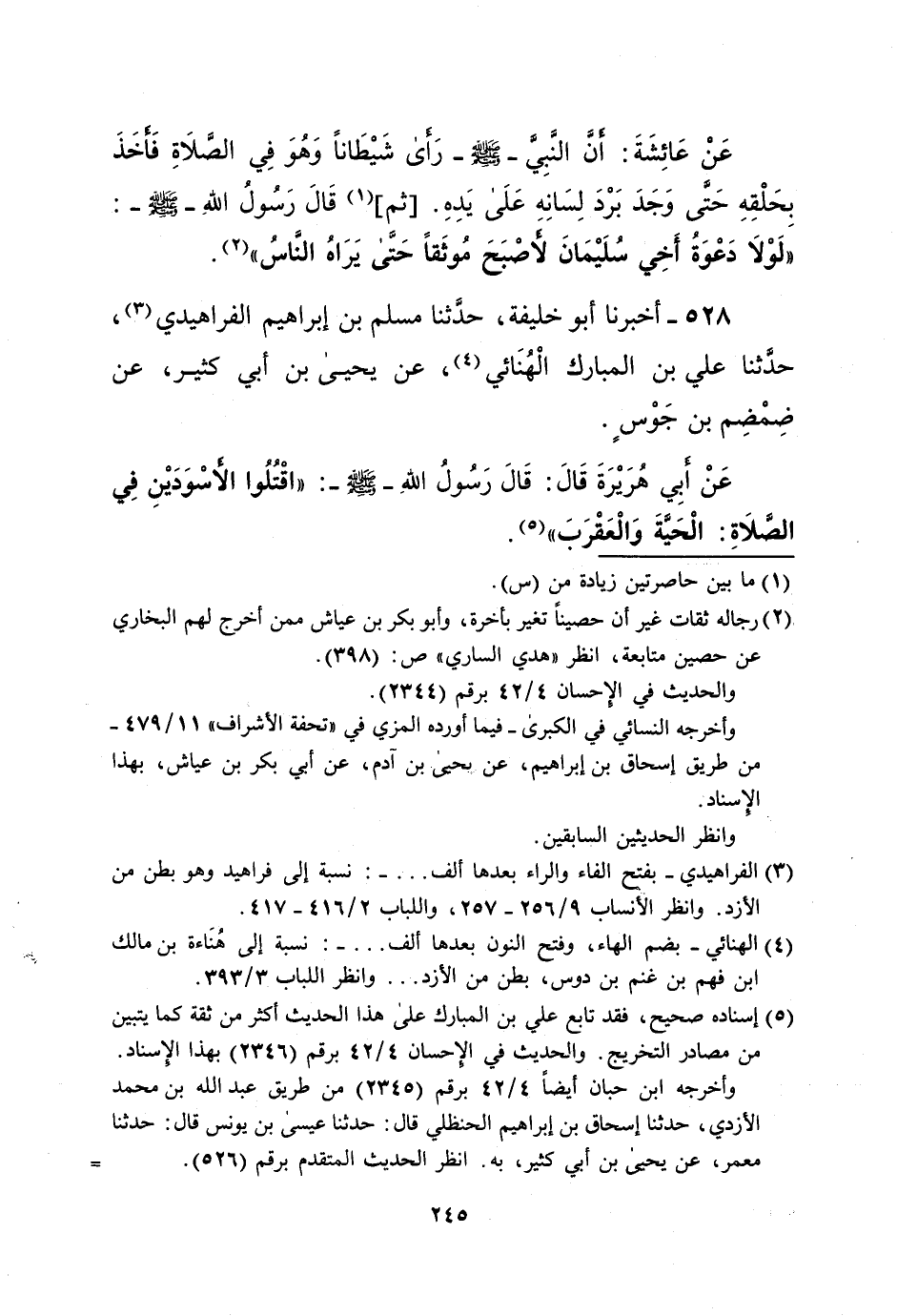 (¬5) إسناده صحيح، فقد تابع علي بن المبارك على هذا الحديث أكثر من ثقة كما يتبين من مصادر التخريج. والحديث في الإحسان 4/ 42 برقم (2346) بهذا الإسناد.