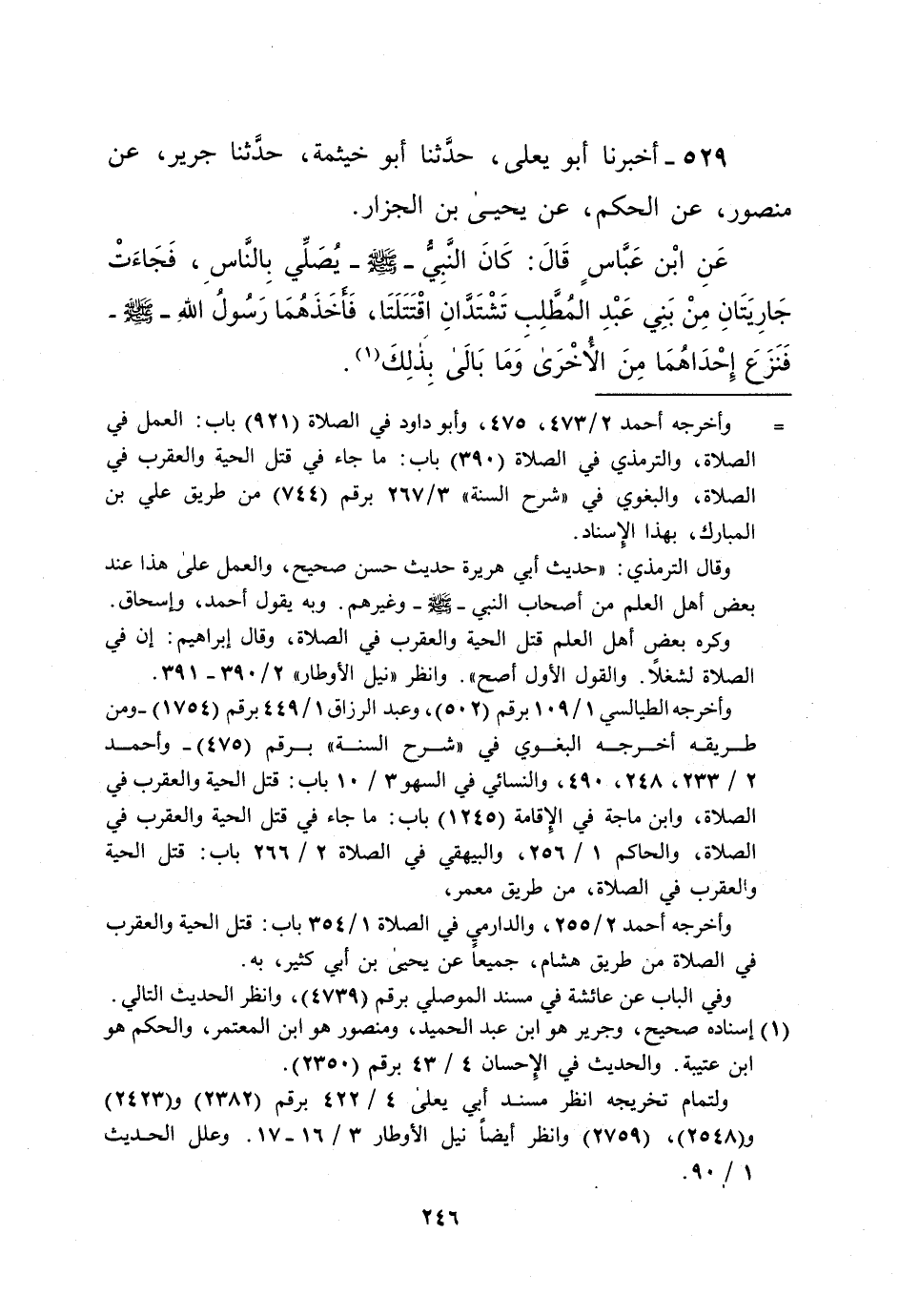 529 - أخبرنا أبو يعلى، حدَّثنا أبو خيثمة، حدَّثنا جرير، عن منصور، عن الحكم، عن يحيى بن الجزار.