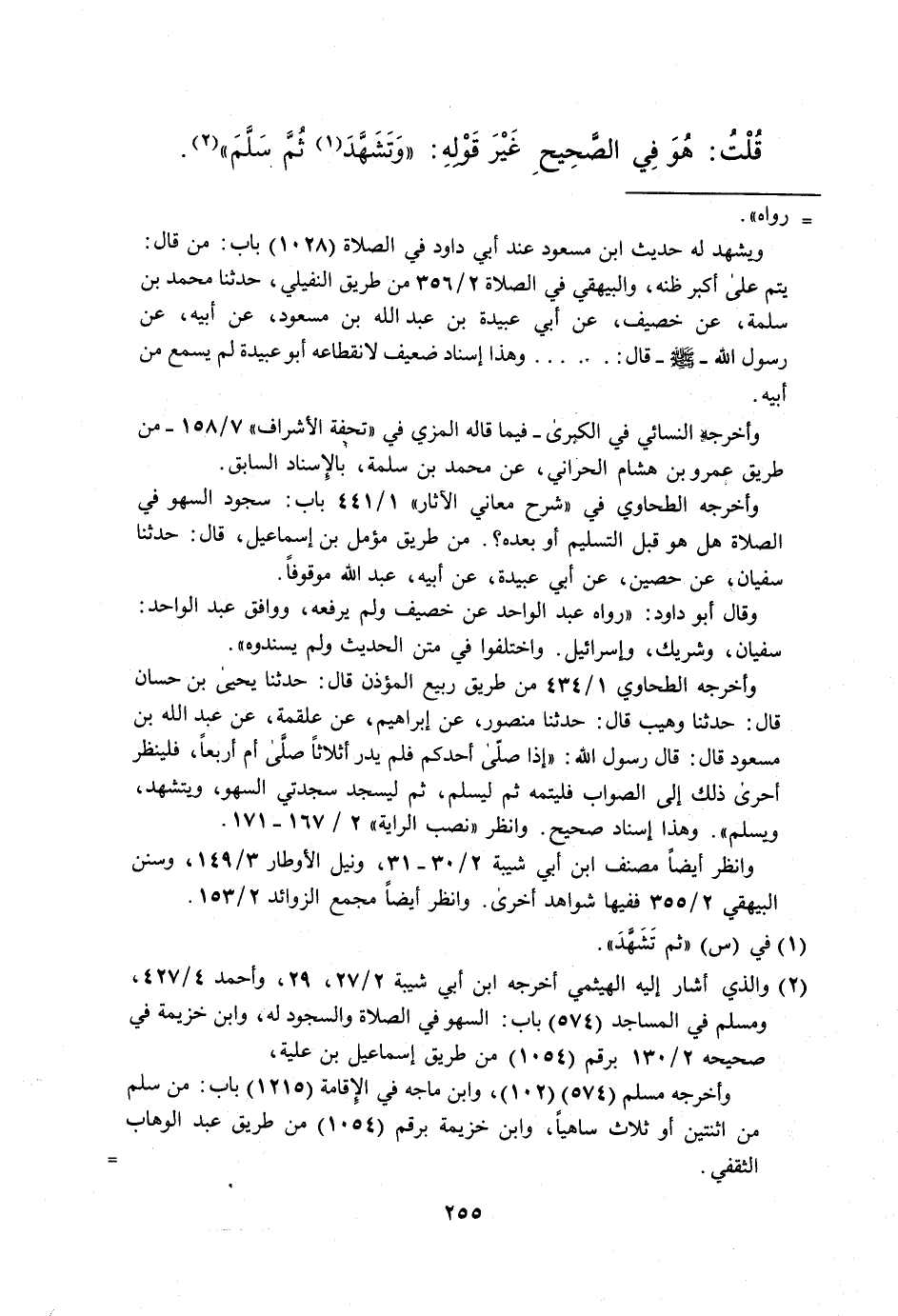 قلْت: هو فِي الصَّحِيحِ غَيْرَ قَوْلهِ: "وَتَشَهَّدَ (¬1) ثُمَّ سَلَّمَ" (¬2).