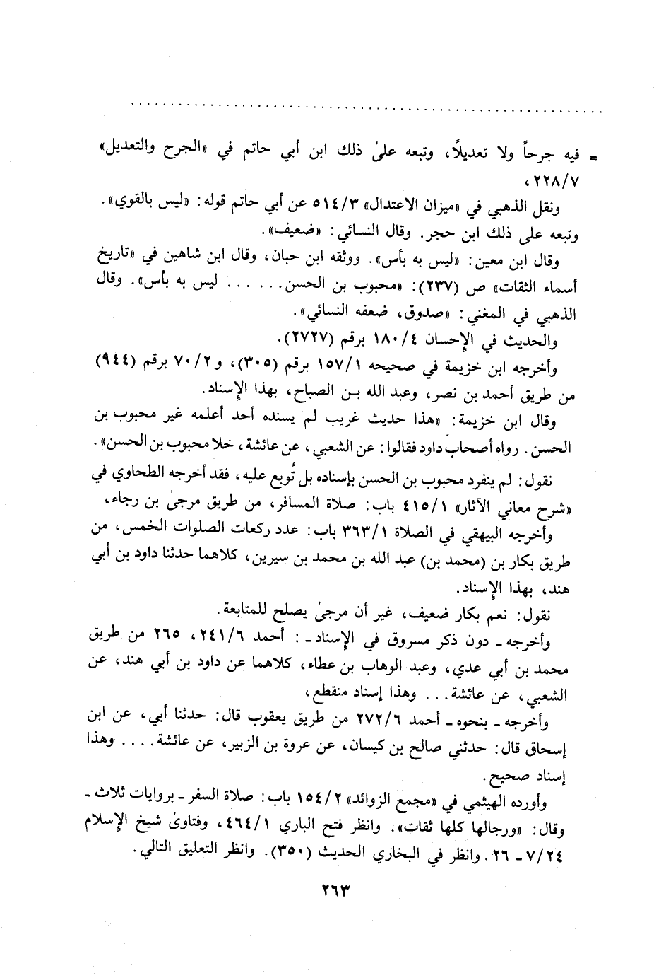 وقال ابن خزيمة: "هذا حديث غريب لم يسنده أحد أعلمه غير محبوب بن