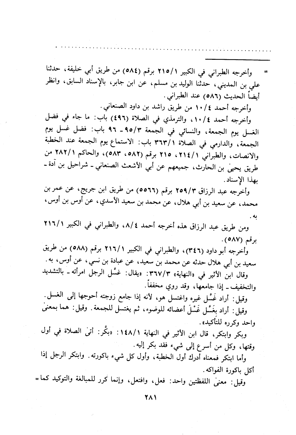 وأخرجه أحمد 4/ 10، والترمذي في الصلاة (496) باب: ما جاء في فضل الغسل يوم الجمعة، والنسائي في الجمعة 3/ 95 - 96 باب: فضل غسل يوم الجمعة، والدارمي في الصلاة 1/ 363 باب: الاستماع يوم الجمعة عند الخطبة والإنصات، والطبراني 1/ 214، 215 برقم (582، 583)، والحاكم 1/ 282 من طريق يحيى بن الحارث، جميعهم عن أبي الأشعث الصنعاني- شراحيل بن آدة- بهذا الإِسناد.