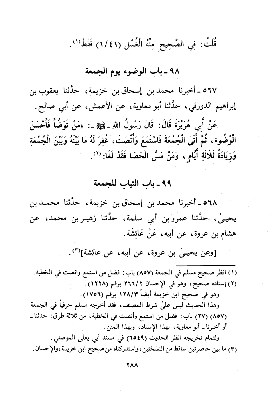 567 - أخبرنا محمد بن إسحاق بن خزيمة، حدَّثنا يعقوب بن إبراهيم الدورقي، حدَّثنا أبو معاوية، عن الأعمش، عن أبي صالح.
