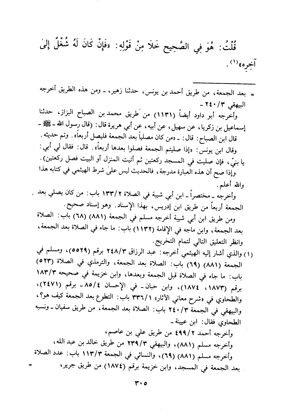 (¬1) والذي أشار إليه الهيثمي أخرجه: عبد الرزاق 3/ 248 برقم (5529)، ومسلم في الجمعة (881) (69) باب: الصلاة بعد الجمعة، والترمذي في الصلاة (523) باب: ما جاء في الصلاة قبل الجمعة وبعدها، وابن خزيمة في صحيحه 3/ 183 برقم (1873، 1874)، وابن حبان- في الإِحسان 4/ 85 - برقم (2471)،