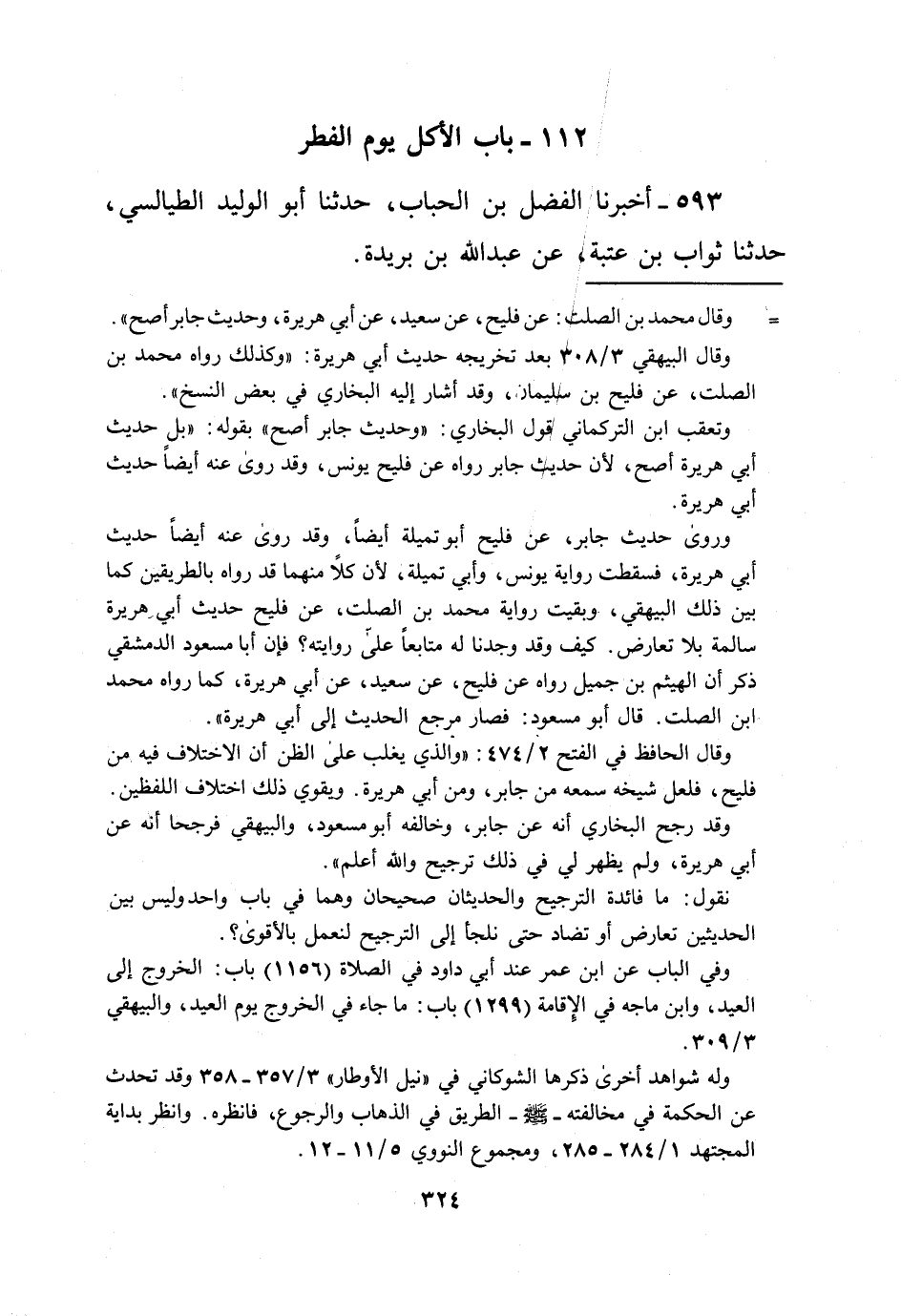 593 - أخبرنا الفضل بن الحباب، حدثنا أبو الوليد الطيالسي، حدثنا ثواب بن عتبة، عن عبد الله بن بريدة.