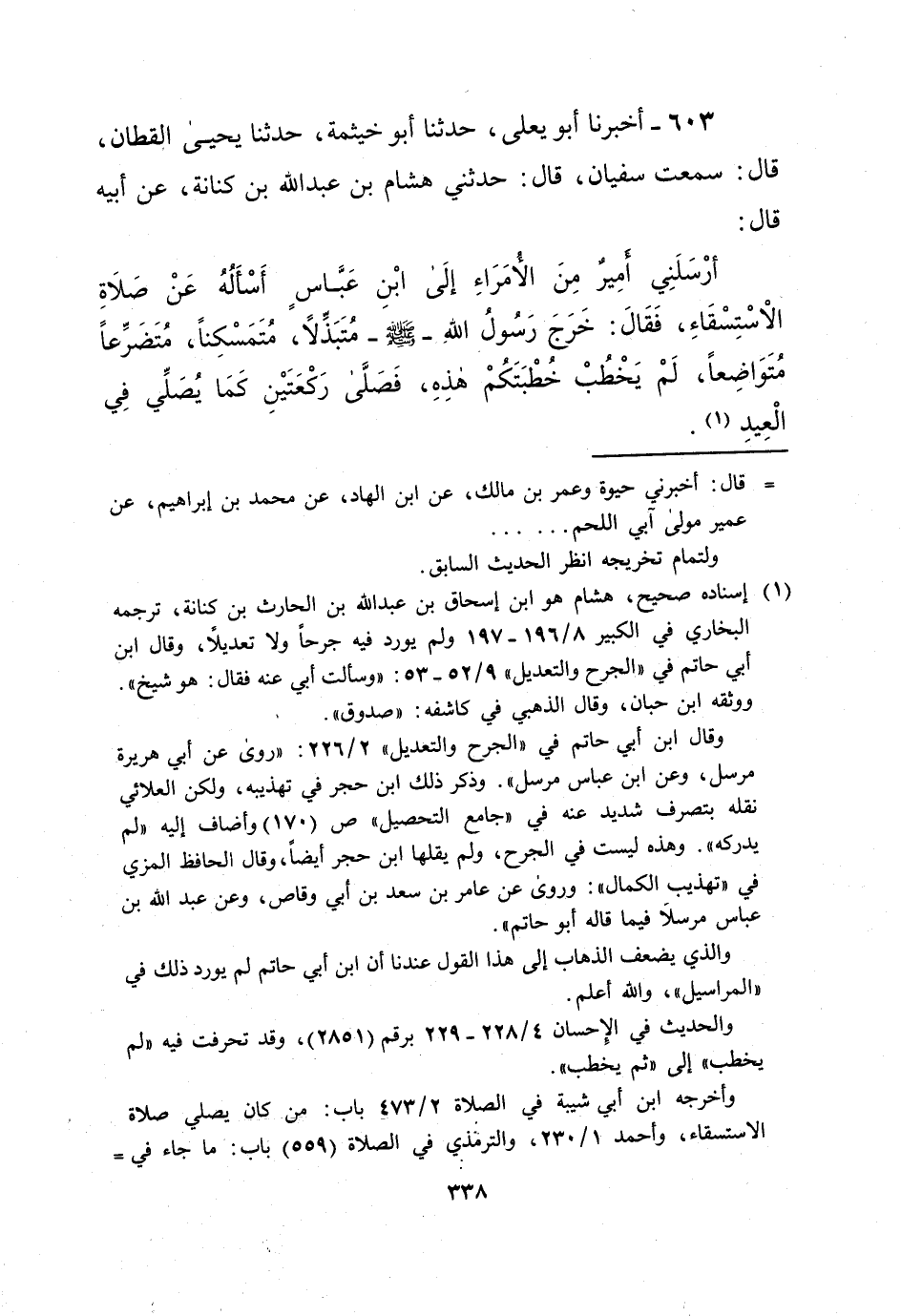 603 - أخبرنا أبو يعلى، حَدثنا أبو خيثمة، حدثنا يحيى القطان، قال: سمعت سفيان، قال: حدثني هشام بن عبد الله بن كنانة، عن أبيه قال: