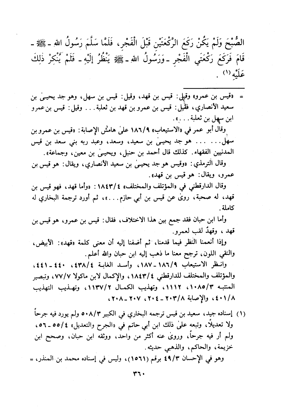 وقال أبو عمر في "الاستيعاب" 9/ 186 على هامش الإصابة: "قيس بن عمرو بن سهل ...... هوجد يحيى بن سعيد، وسعد، وعبد ربه فى سعد بن قيس المدنيين الفقهاء. كذلك قال أحمد بن حنبل، ويحيى بن معين، وجماعة".