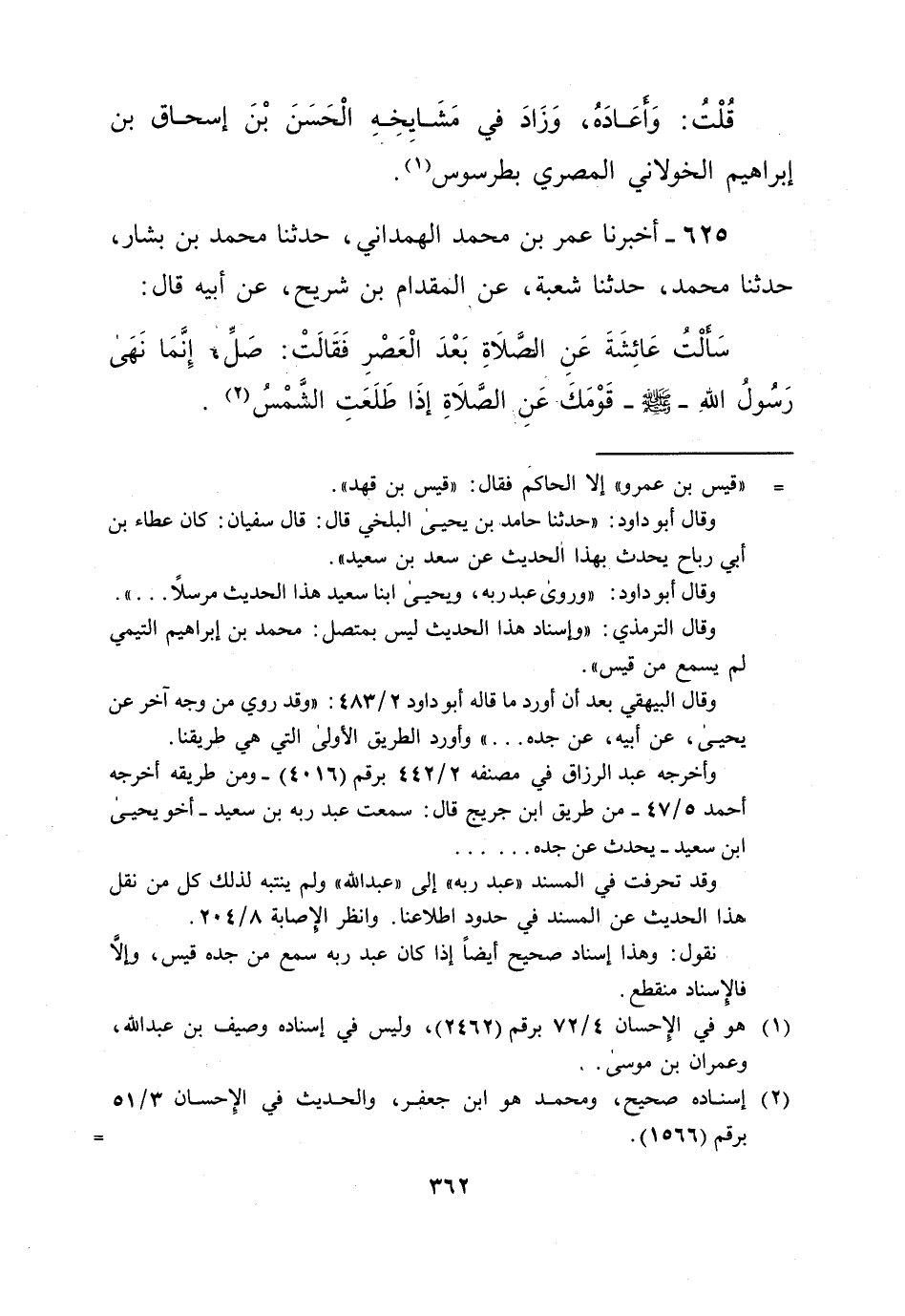 نقول: وهذا إسناد صحيح أيضاً إذا كان عبد ربه سمع من جده قيس، وإلاَّ فالإسناد منقطع.