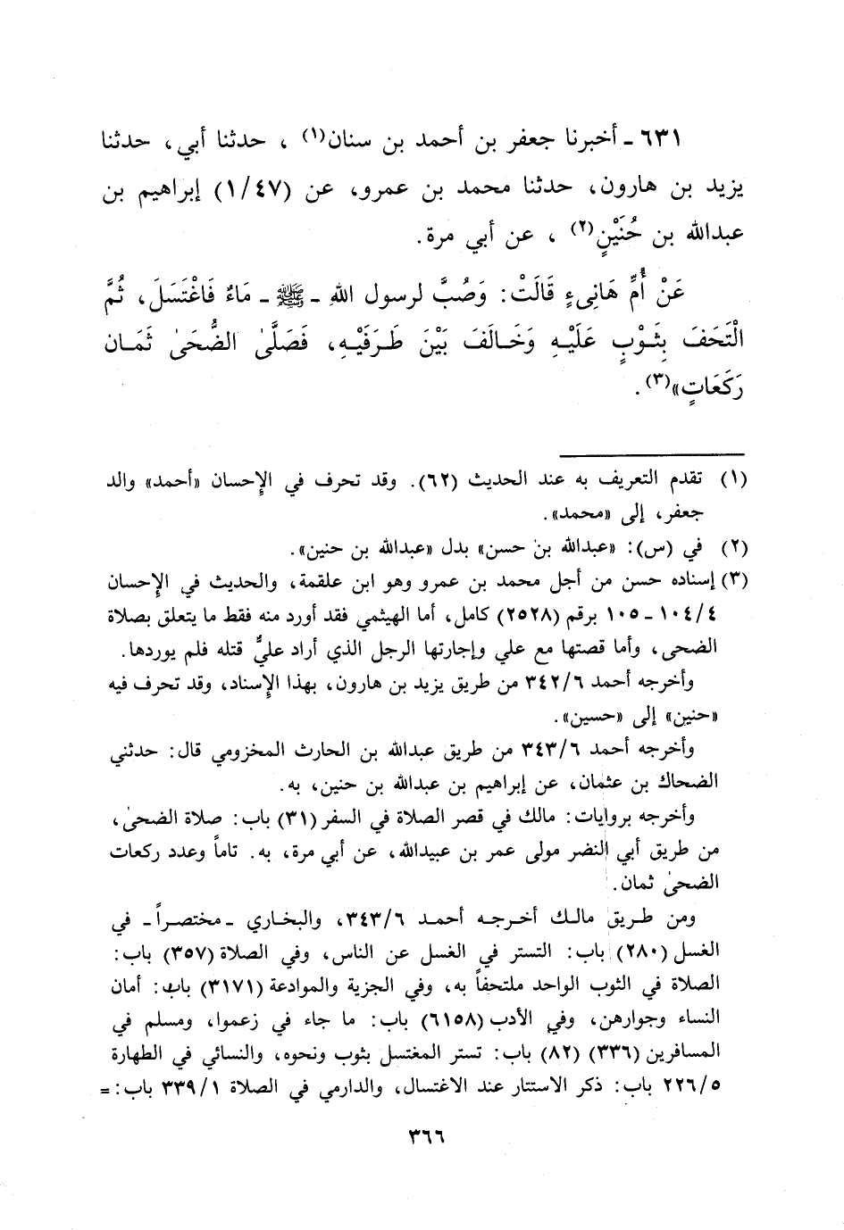 631 - أخبرنا جعفر بن أحمد بن سنان (¬1)، حدثنا أبي بن حدثنا يزيد بن هارون، حدثنا محمد بن عمرو، عن (47/ 1) إبراهيم بن عبد الله بن حُنَيْنٍ (¬2)، عن أبي مرة.