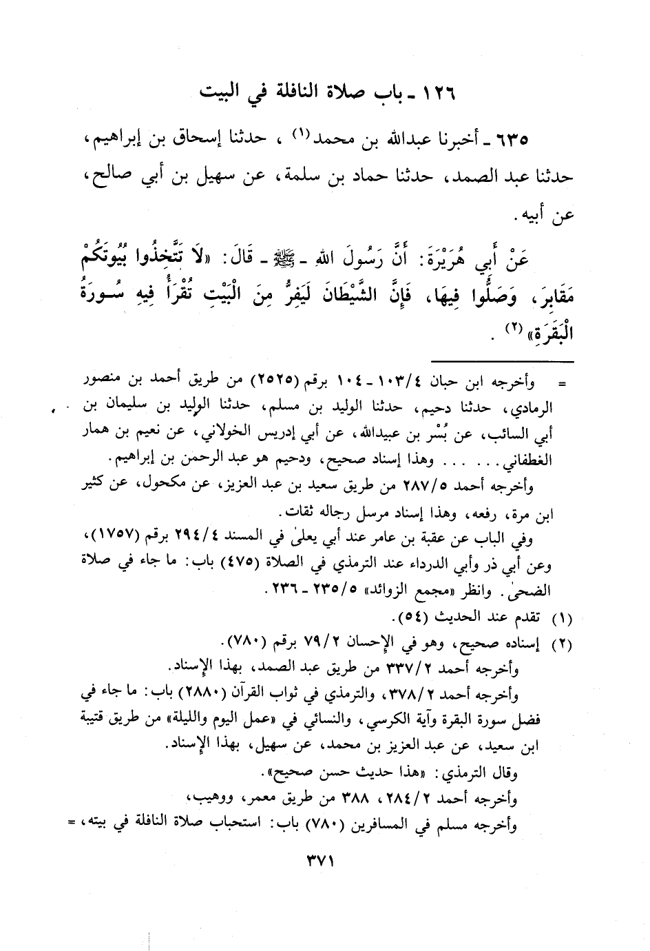 635 - أخبرنا عبد الله بن محمد (¬1)، حدثنا إسحاق بن إبراهيم، حدثنا عبد الصمد، حدثنا حماد بن سلمة، عن سهيل بن أبي صالح، عن أبيه.