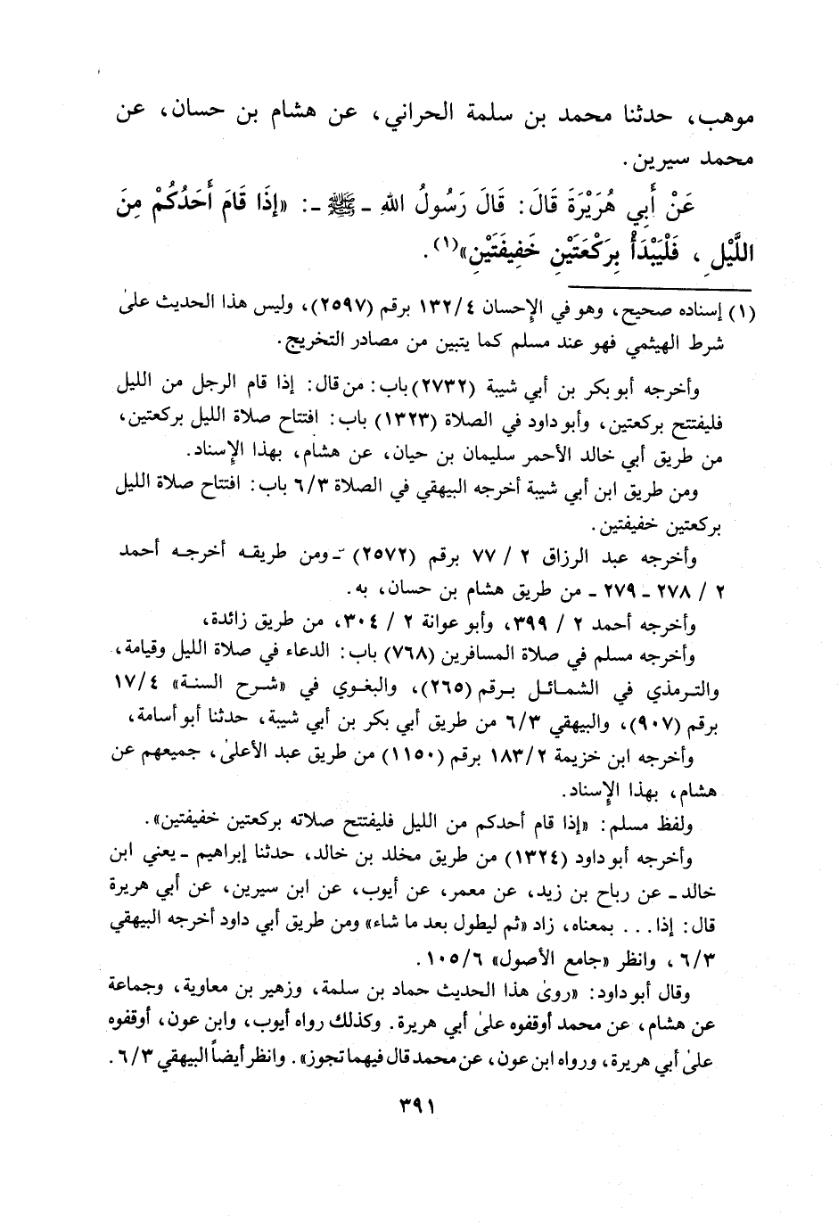 وقال أبو داود: "روى هذا الحديث حماد بن سلمة، وزهير بن معاوية، وجماعة عن هشام، عن محمد أوقفوه على أبي هريرة. وكذلك رواه أيوب، وابن عون، أوقفوه على أبي هريرة، ورواه ابن عون، عن محمد قال فيهما تجوز". وانظر أيضاً البيهقي 3/ 6.