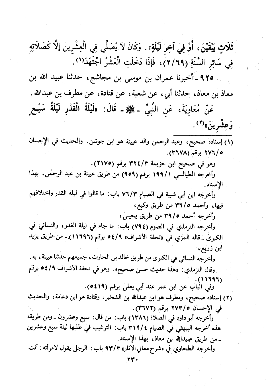 عَنْ مُعَاوَيةَ، عَنِ النَّبِيَّ -صلى الله عليه وسلم- قَالَ: " لَيْلَةُ الْقَدْرِ لَيْلَةُ سَبْع وَعِشْرِينَ" (¬2).