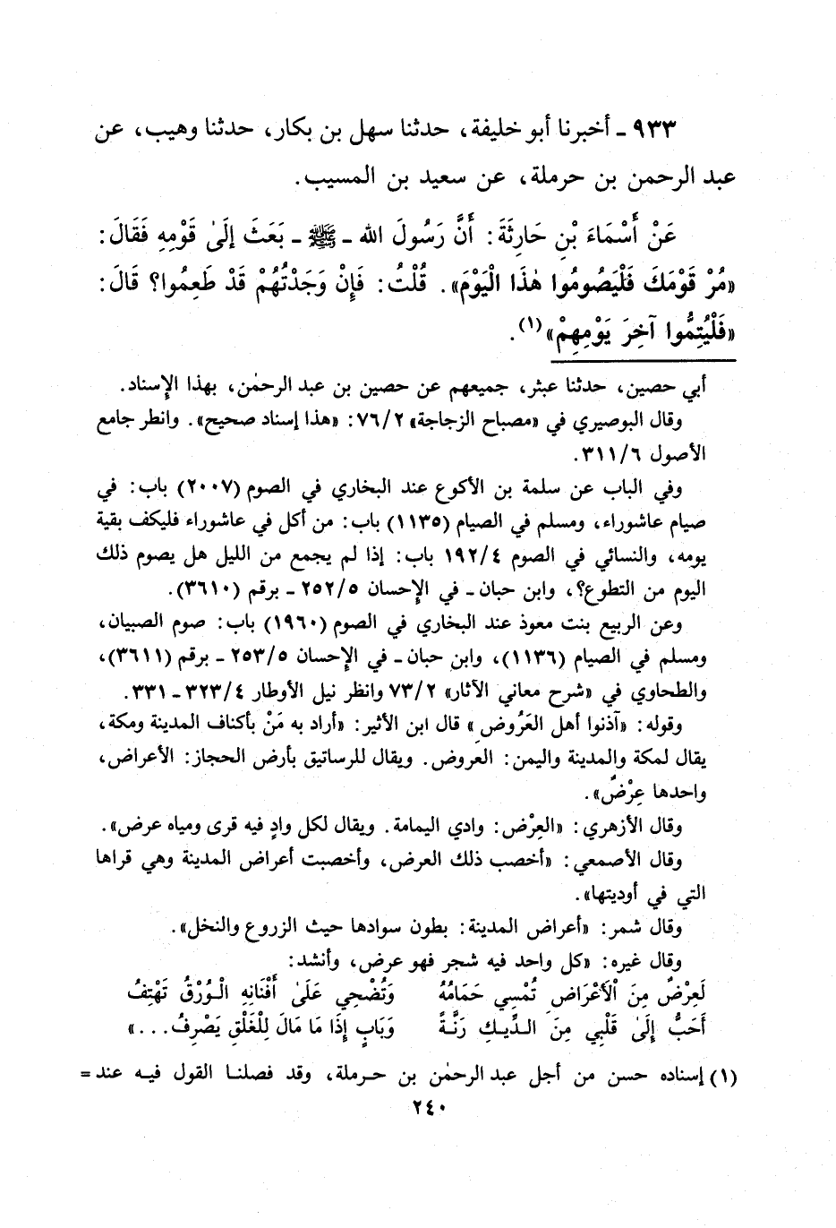 933 - أخبرنا أبو خليفة، حدثنا سهل بن بكار، حدثنا وهيب، عن عبد الرحمن بن حرملة، عن سعيد بن المسيب.
