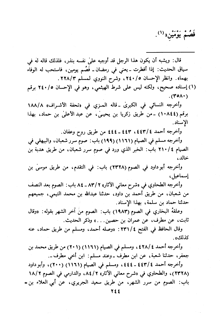وأخرجه مسلم في الصيام (1161) (199) باب: صوم سرر شعبان، والبيهقي في الصيام 4/ 210 باب: الخبر الذي ورد في صوم سرر شعبان، من طريق هدبة بن خالد،