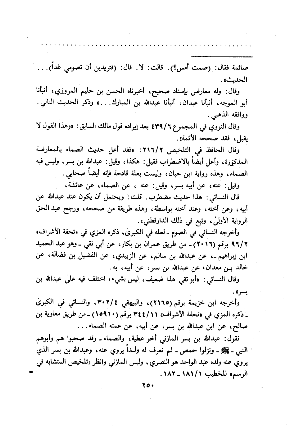 نقول: عبد الله بن بسر المازني أخو عطية، والصماء- وقد صحبوا هم وأبوهم النبي -صلى الله عليه وسلم- ونزلوا حمص- لم نعرف له ولداً يروي عنه، وعبد الله بن بسر الذي يروي عنه ولده عبد الواحد هو النصري، وليس المازني وانظر "تلخيص المتشابه في الرسم" للخطيب 1/ 181 - 182. =
