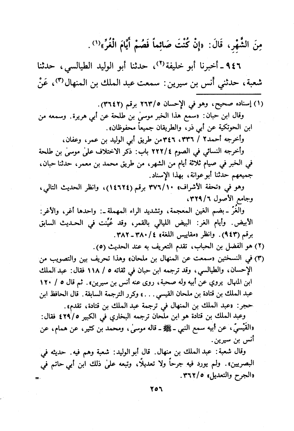 946 - أخبرنا أبو خليفة (¬2)، حدثنا أبو الوليد الطيالسي، حدثنا شعبة، حدثني أَنس بن سيرين: سمعت عبد الملك بن المنهال (¬3)، عَنْ