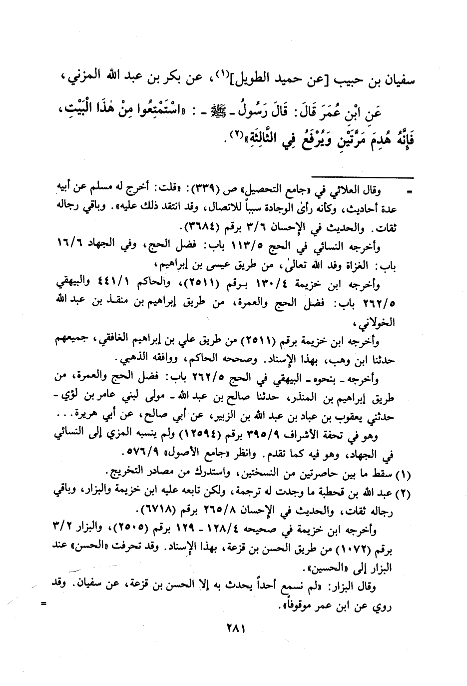 =وقال العلائي في "جامع التحصيل" ص (339): "قلت: أخرج له مسلم عن أبيه عدة أحاديث، وكأنه رأى الوجادة سبباً للاتصال، وقد انتقد ذلك عليه". وباقي رجاله ثقات. والحديث في الإحسان 6/ 3 برقم (3684).