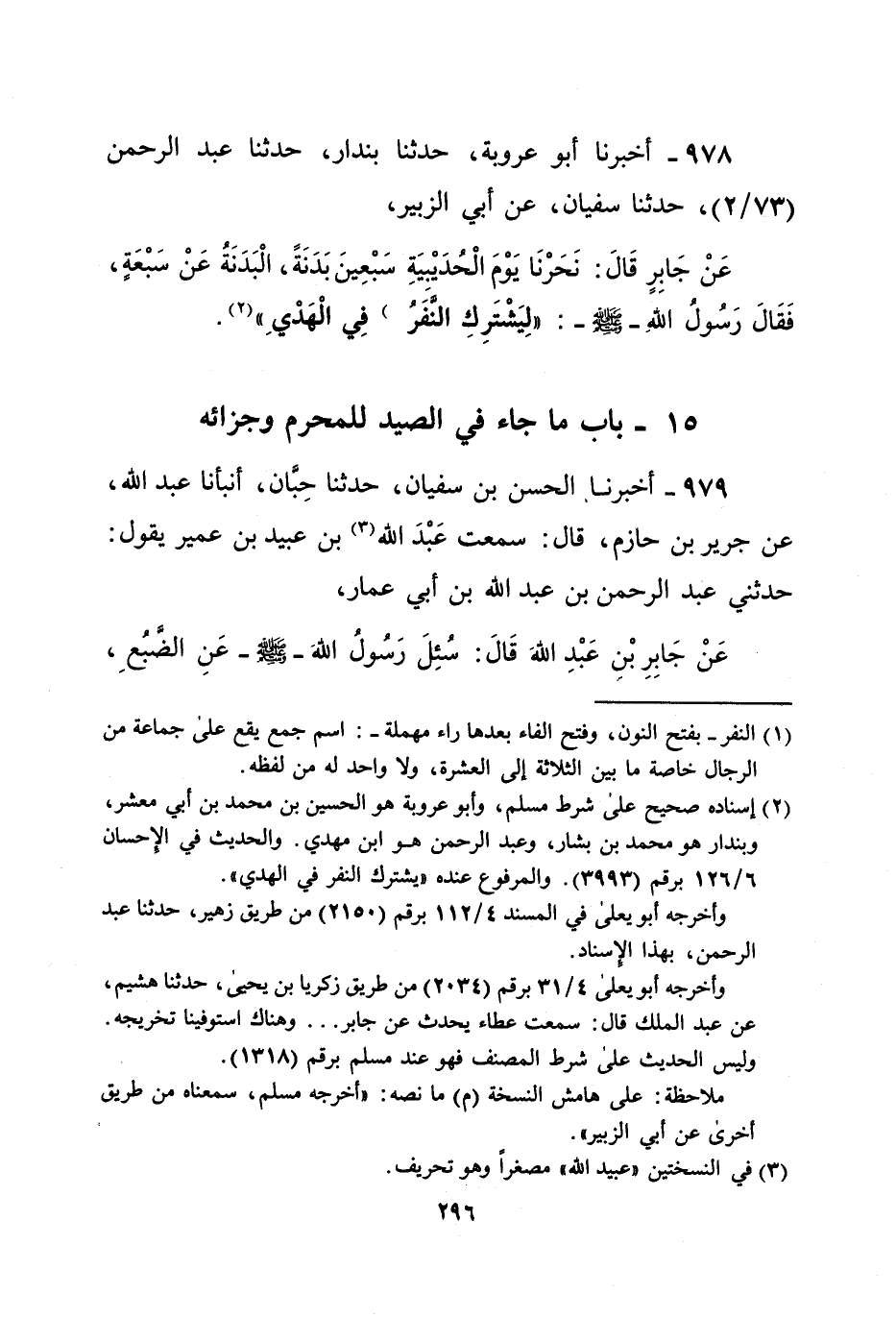 979 - أخبرنا الحسن بن سفيان، حدثنا حِبَّان، أنبأنا عبد الله، عن جرير بن حازم، قال: سمعت عَبْدَ الله (¬3) بن عبيد بن عمير يقول: حدثني عبد الرحمن بن عبد الله بن أبي عمار، عَنْ جَابِرِ بْنِ عَبْدِ الله قَالَ: سُئلَ رَسُولُ اللهَ -صلى الله عليه وسلم- عَنِ الضَّبُعِ،