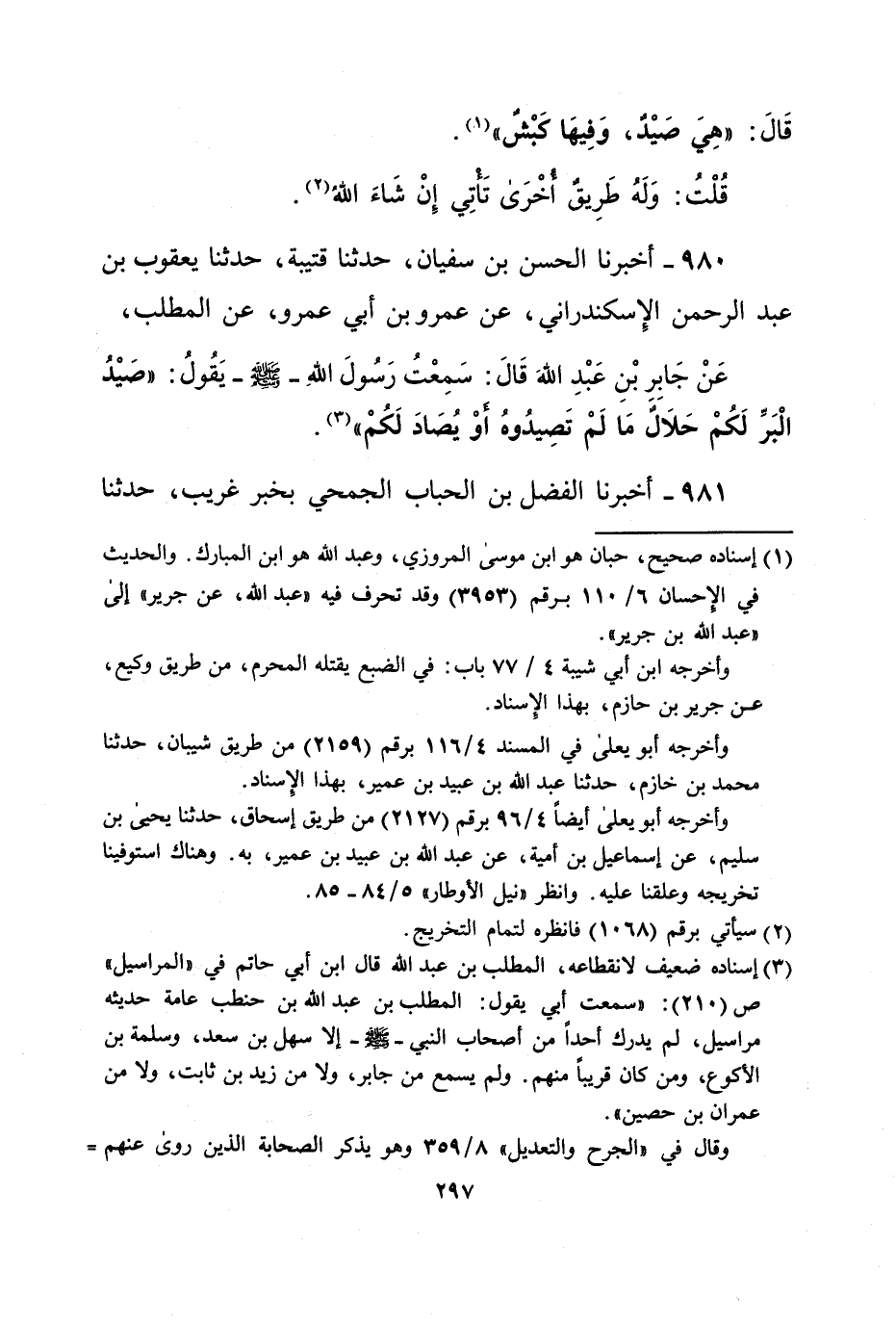 (¬1) إسناده صحيح، حبان هو ابن موسى المروزي، وعبد الله هو ابن المبارك. والحديث في الإحسان 6/ 110 برقم (3953) وقد تحرف فيه "عبد الله، عن جرير" إلى "عبد الله بن جرير".