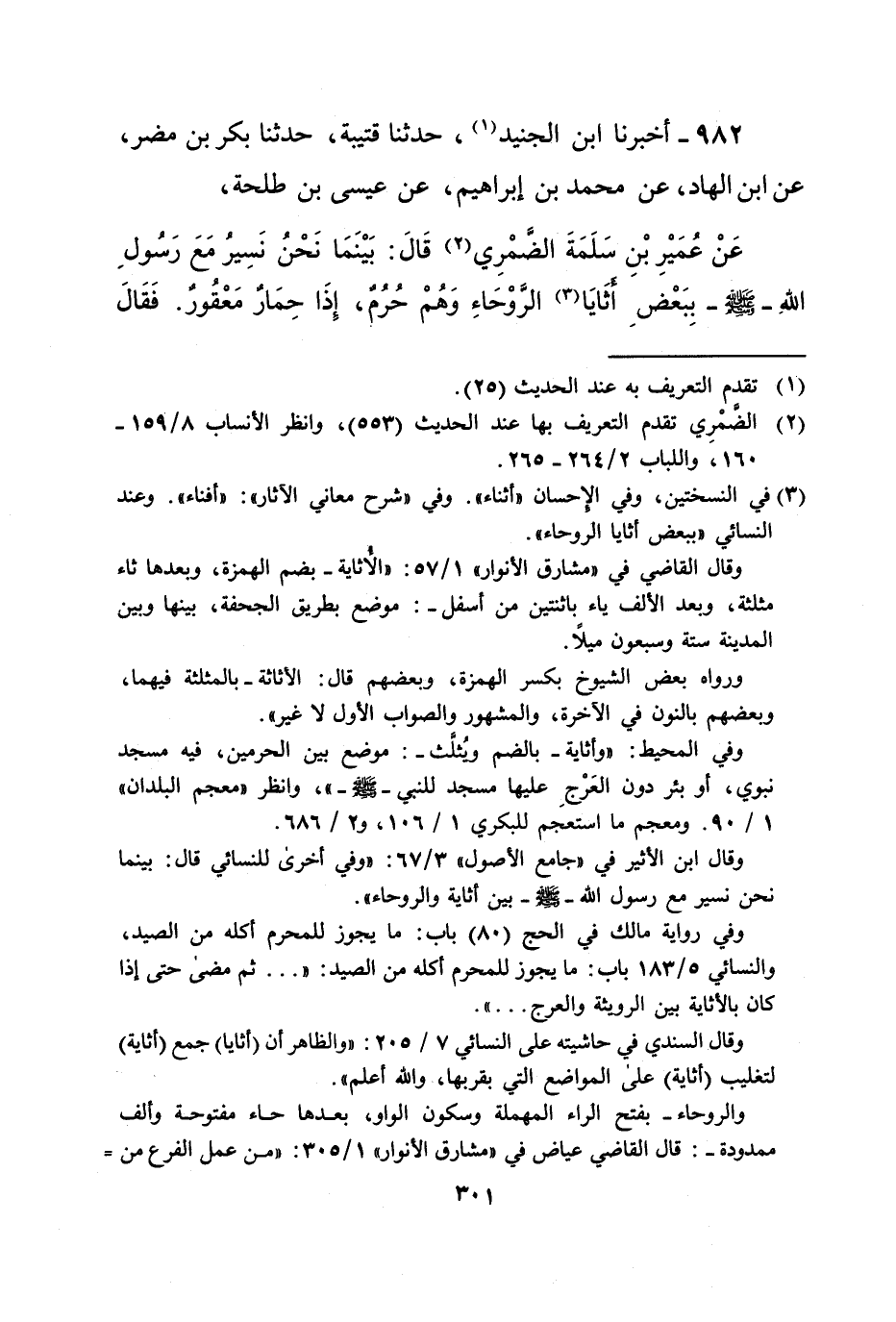 982 - أخبرنا ابن الجنيد (¬1)، حدثنا قتيبة، حدثنا بكر بن مضر، عن ابن الهاد، عن محمد بن إبراهيم، عن عيسى بن طلحة،