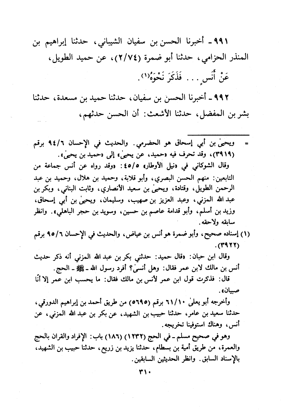 991 - أخبرنا الحسن بن سفيان الشيباني، حدثنا إبراهيم بن المنذر الحزامي، حدثنا أبو ضمرة (2/ 74)، عن حميد الطويل، عَنْ أنَسٍ ... فَذَكَرَ نَحْوَهُ (¬1).
