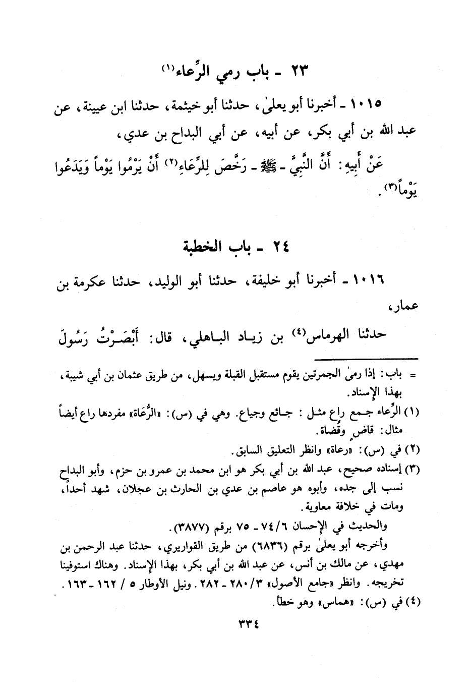 1015 - أخبرنا أبو يعلى، حدثنا أبو خيثمة، حدثنا ابن عيينة، عن عبد الله بن أبي بكر، عن أبيه، عن أبي البداح بن عدي،
