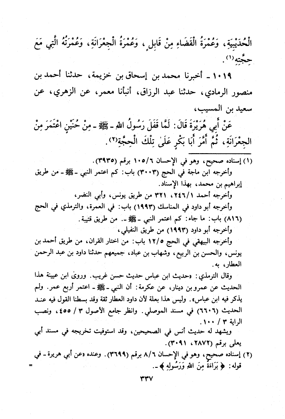 1019 - أخبرنا محمد بن إسحاق بن خزيمة، حدثنا أحمد بن منصور الرمادي، حدثنا عبد الرزاق، أنبأنا معمر، عن الزهري، عن سعيد بن المسيب،