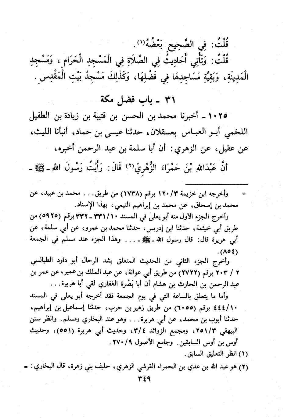 وأما ما يتعلق بالساعة التي في يوم الجمعة فقد أخرجه أبو يعلى في المسند 10/ 444 برقم (6055) من طريق زهير بن حرب، حدثنا إسماعيل بن إبراهيم، حدثنا أيوب بن محمد، عن أبي هريرة ... وهو عند البخاري ومسلم. وانظر سنن البيهقي 3/ 251، ومجمع الزوائد 4/ 3، وحديث أبي هريرة (551)، وحديث أوس بن أوس السابقين. وجامع الأصول 9/ 270.