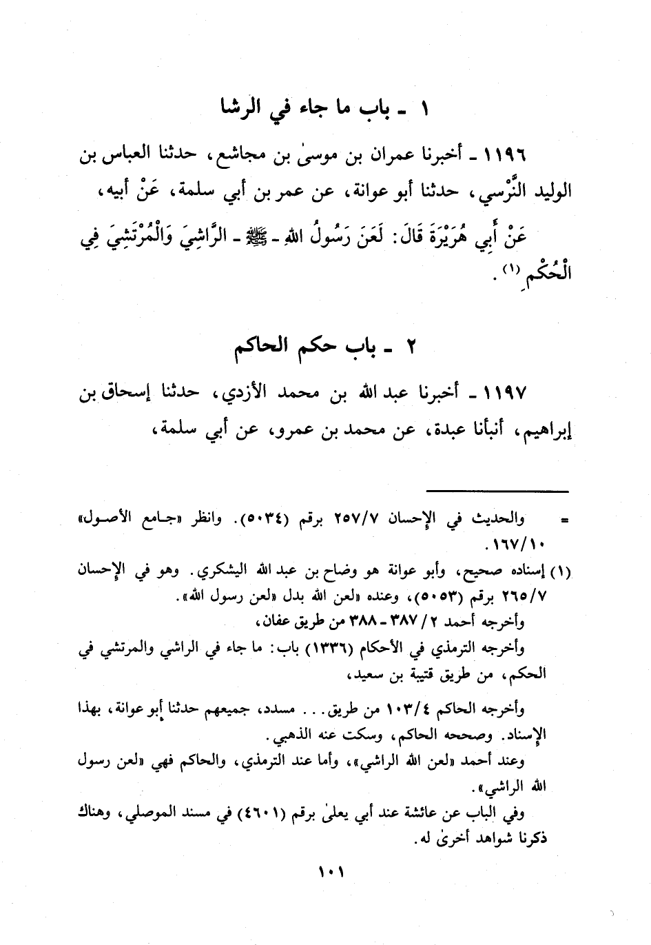 عَنْ أَبِي هُرَيْرَةَ قَالَ: لَعَنَ رَسُولُ اللهِ - صلى الله عليه وسلم - الرَّاشِيَ وَالْمُرْتَشِيَ فِي الْحُكْمَ (¬1).