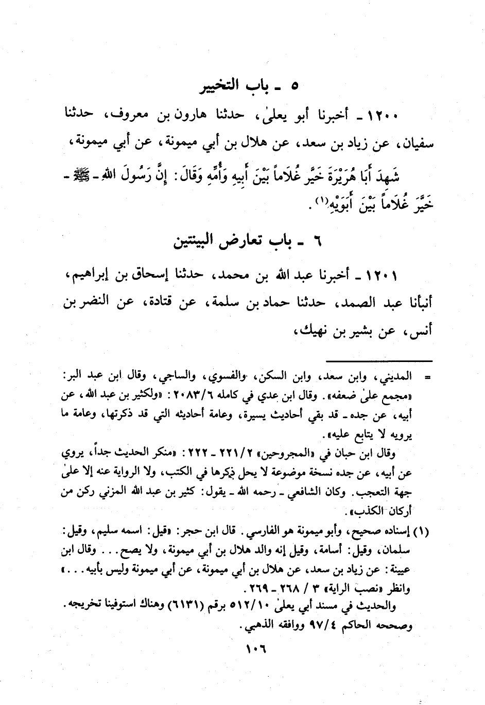 1200 - أخبرنا أبو يعلى، حدثنا هارون بن معروف، حدثنا سفيان، عن زياد بن سعد، عن هلال بن أبي ميمونة، عن أبي ميمونة،