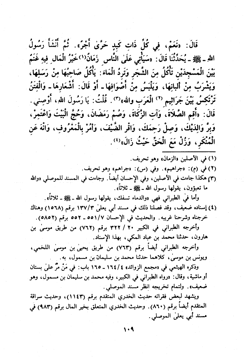 ويشهد لبعض فقراته حديث الخدري المتقدم برقم (1143)، وحديث سراقة المتقدم أيضاً برقم (860). وحديث الخدري المتعلق بخير المال برقم (983) في مسند أبي يعلى الموصلي.