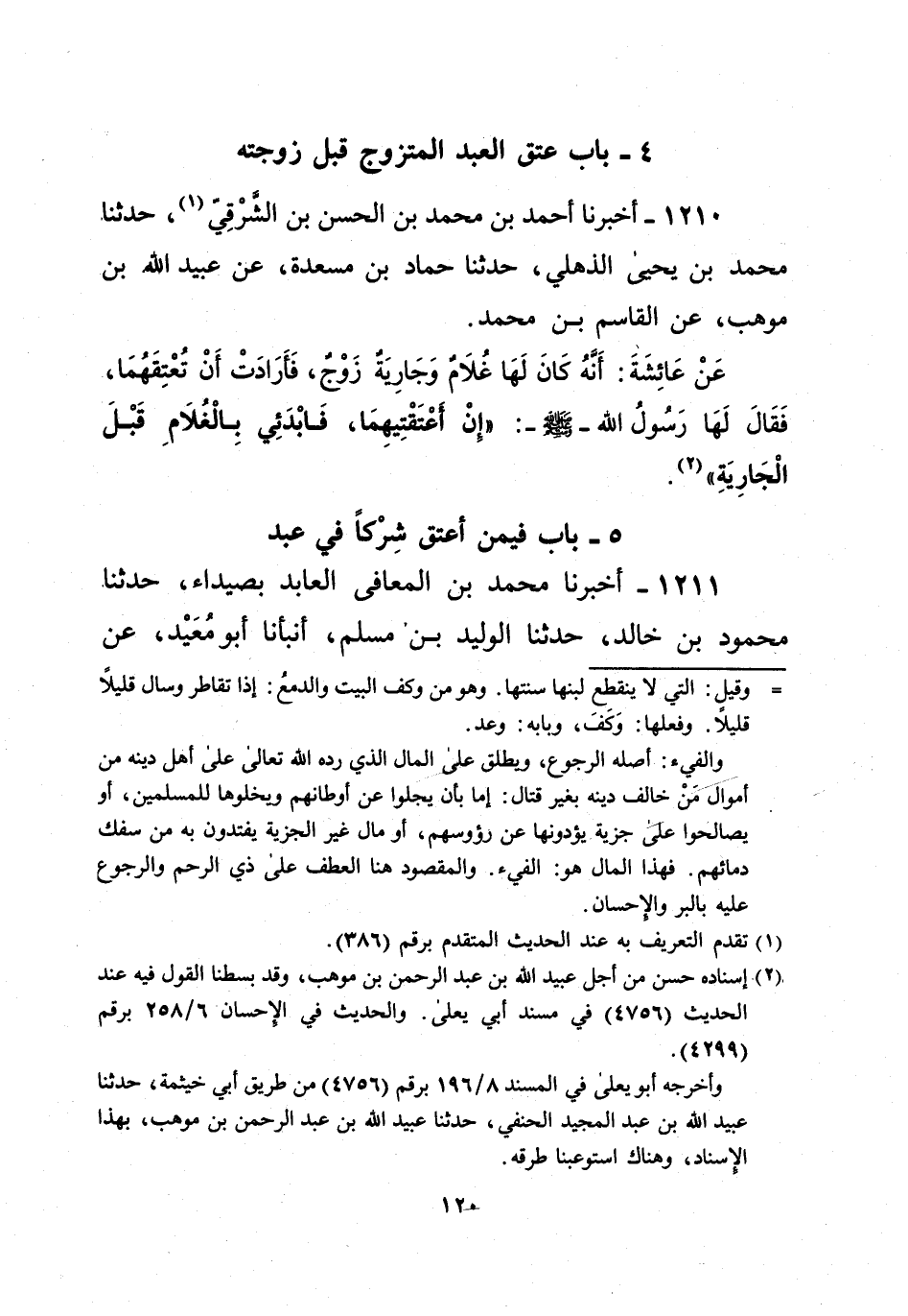 1210 - أخبرنا أحمد بن محمد بن الحسن بن الشرْقِيّ (¬1)، حدثنا محمد بن يحيى الذهلي، حدثنا حماد بن مسعدة، عن عبيد الله بن موهب، عن القاسم بن محمد.