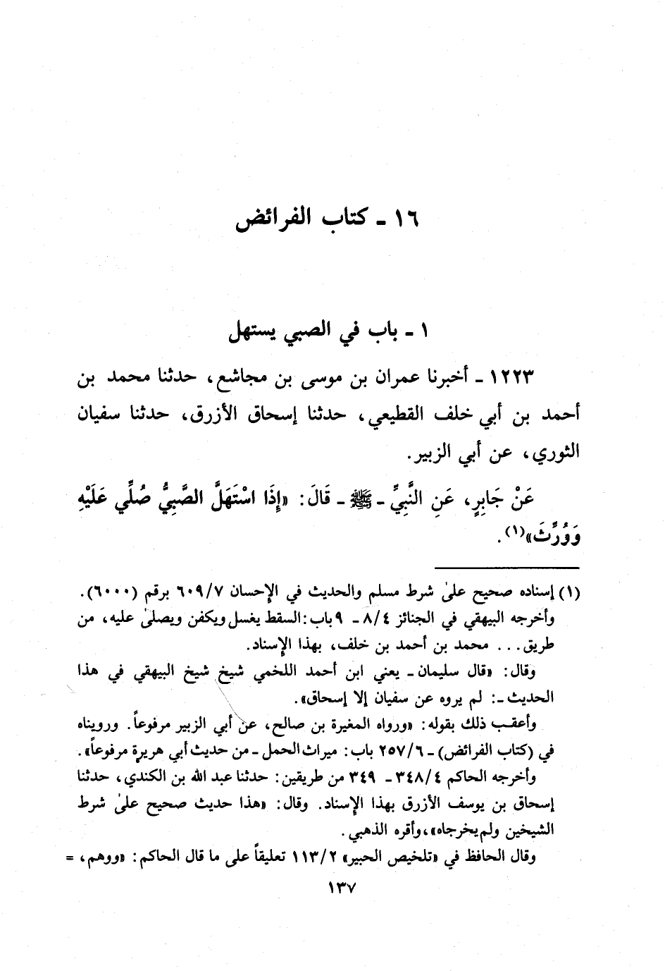 1223 - أخبرنا عمران بن موسى بن مجاشع، حدثنا محمد بن أحمد بن أبي خلف القطيعي، حدثنا إسحاق الأزرق، حدثنا سفيان الثوري، عن أبي الزبير.