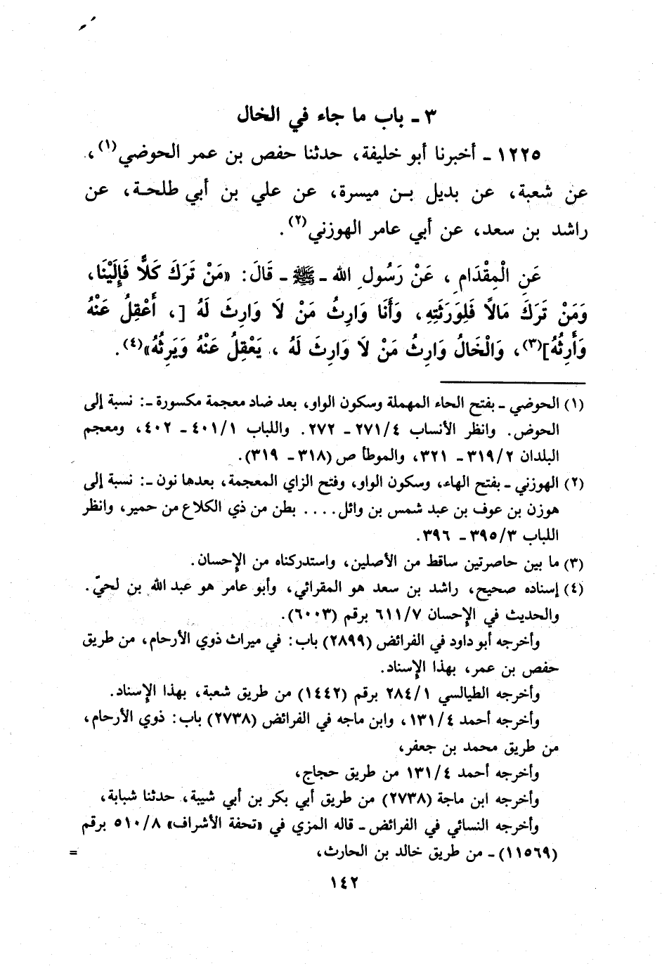 وأخرجه أبو داود في الفرائض (2899) باب: في ميراث ذوي الأرحام، من طريق حفص بن عمر، بهذا الإسناد.
