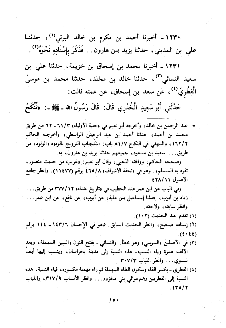 1230 - أخبرنا أحمد بن مكرم بن خالد البرتي (¬1)، حدثنا. علي بن المديني، حدثنا يزيد بن هارون .. فَذَكَرَ بِإِسْنَادِهِ نَحْوَهُ (¬2).