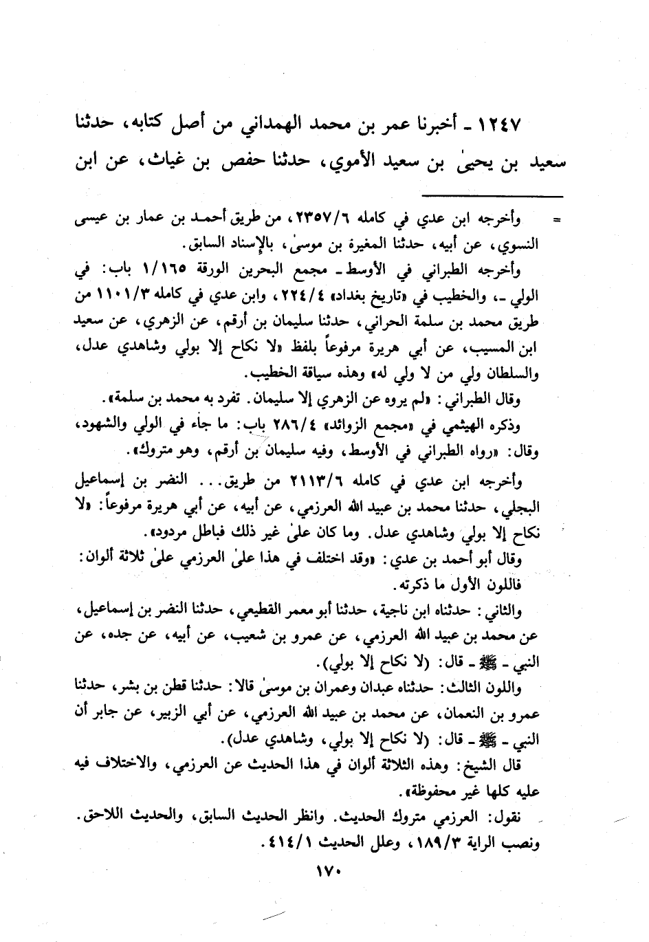 1247 - أخبرنا عمر بن محمد الهمداني من أصل كتابه، حدثنا سعيد بن يحيى بن سعيد الأموي، حدثنا حفص بن غياث، عن ابن