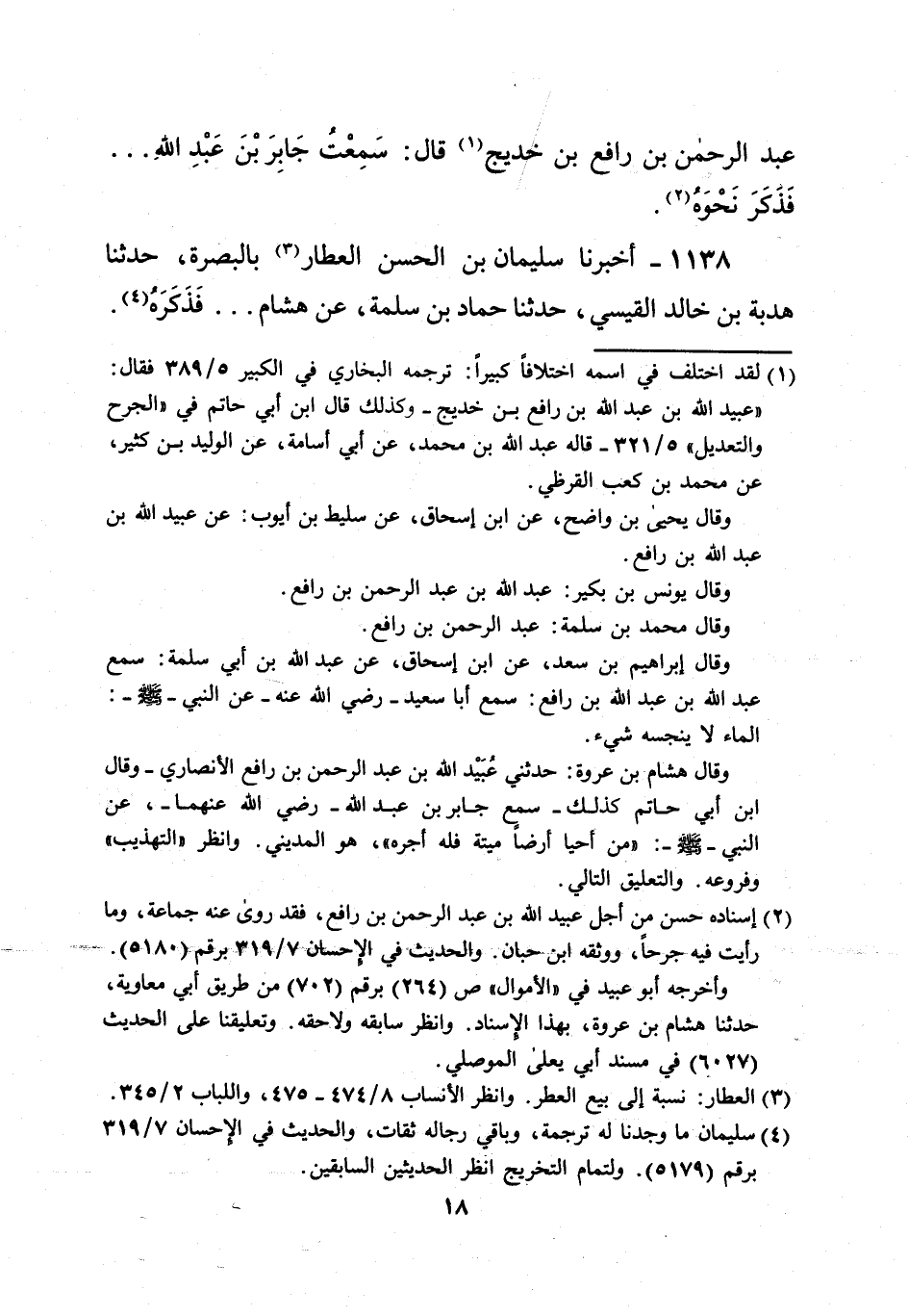 1138 - أخبرنا سليمان بن الحسن العطار (¬3) بالبصرة، حدثنا هدبة بن خالد القيسي، حدثنا حماد بن سلمة، عن هشام ... فَذَكَرَهُ (¬4).